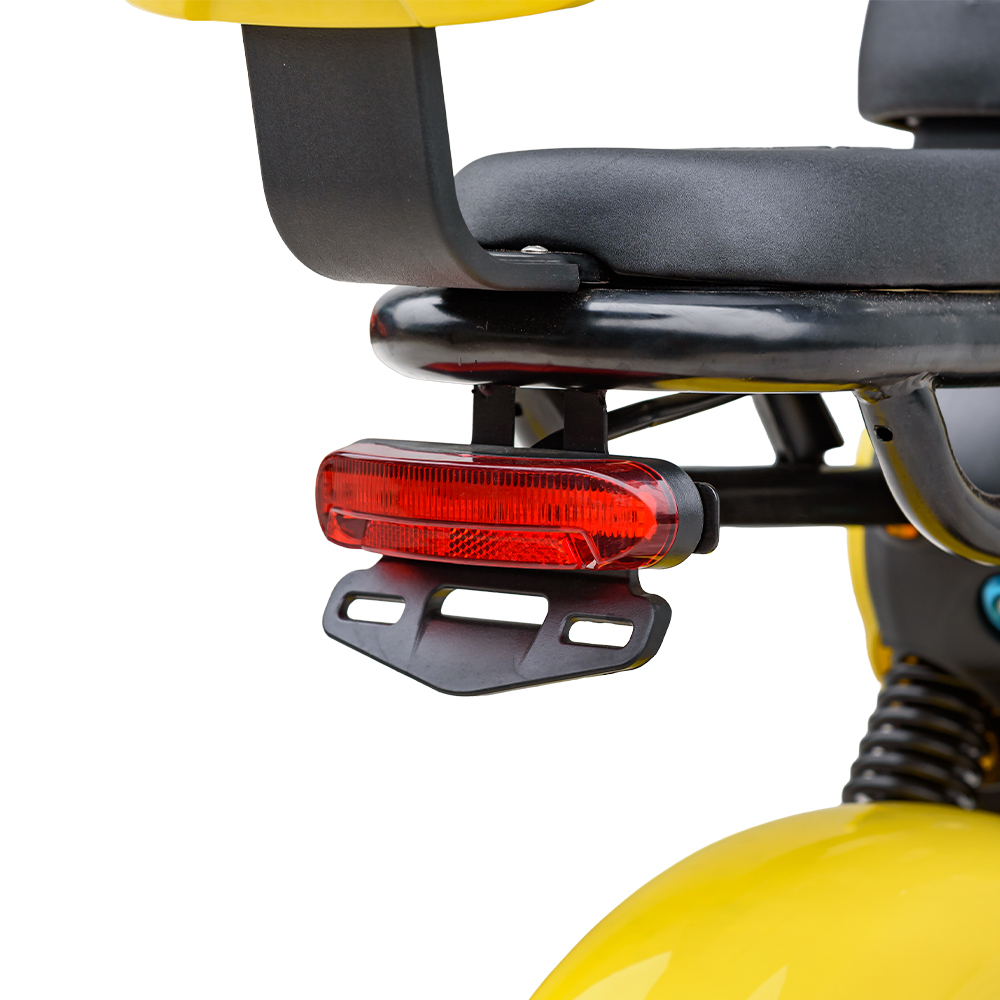 Панель приладів являє собою мінікомп’ютер, розташований на кермі. Чіткий LCD-дисплей показує всі необхідні параметри: швидкість у реальному часі, відсоток заряду, щоб не здивуватися на півдорозі, обраний режим їзди, пробіг (одометр) і навіть індикатори поворотів чи дальнього світла. Панель яскрава, з підсвічуванням, читається добре, як у темряві, так і у світлий день.
