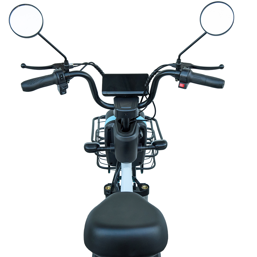 Для комфортного перевезення речей велосипед з електричним мотором оснащений залізним кошиком спереду. Вам не потрібно брати з собою рюкзак чи придумувати способи фіксації вантажу — все передбачено. Просто складіть свої речі у кошик та рухайтесь без дискомфорту.