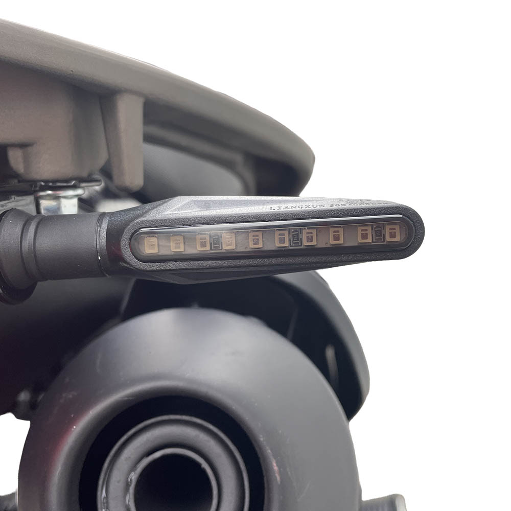 Світлодіодні динамічні покажчики поворотів добре помітні вдень і вночі, чітко сигналізуючи про маневри мотоцикла. Гнучкі кріплення зменшують ризик пошкоджень під час падінь.
