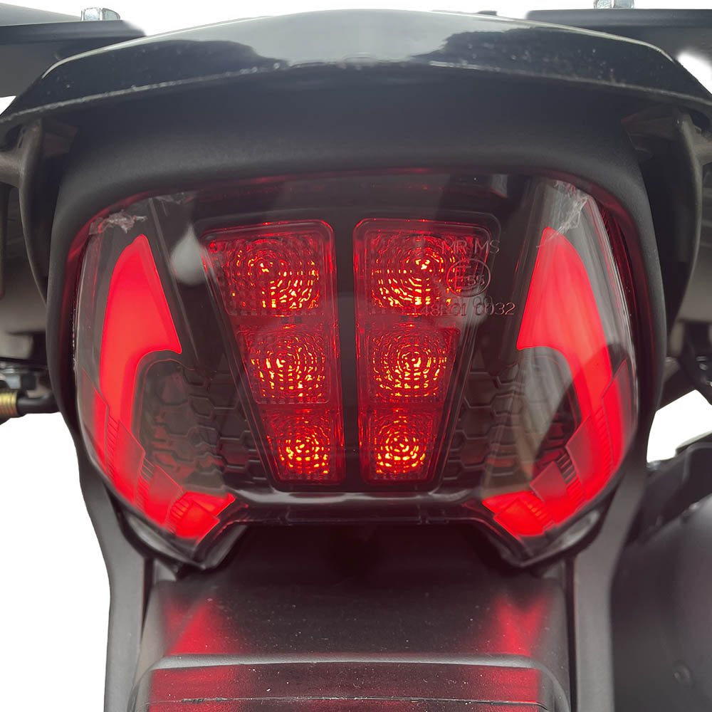 Передня світлодіодна фара з лінзою формує чіткий і спрямований світловий пучок, що підвищує безпеку руху в темний час доби та в умовах обмеженої видимості. Світлодіодні габаритні вогні та покажчики поворотів на гнучких кріпленнях покращують помітність мотоцикла і краще переносять вібрації та падіння.