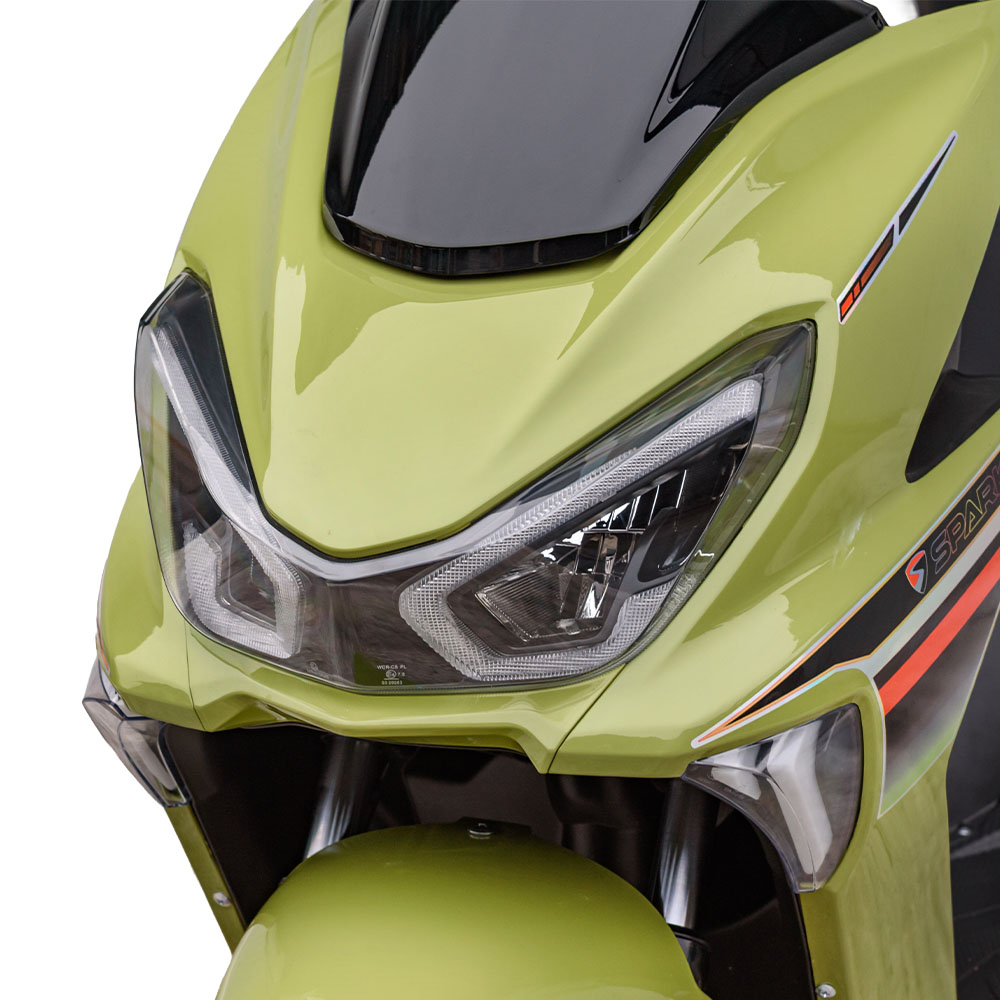 Передня оптика Подвійна блок-фара вбудована в обтічник, з лампами розжарювання. Габаритні вогні і покажчики поворотів світлодіодні.