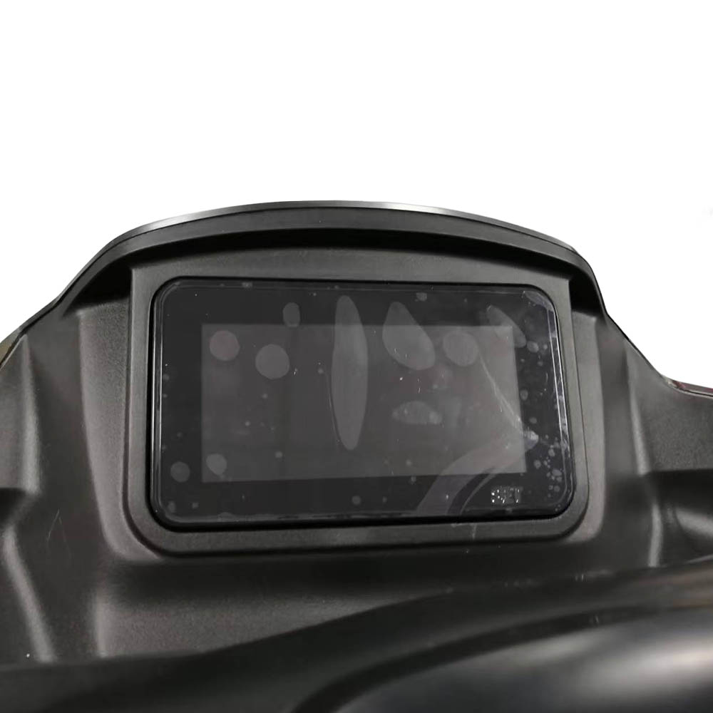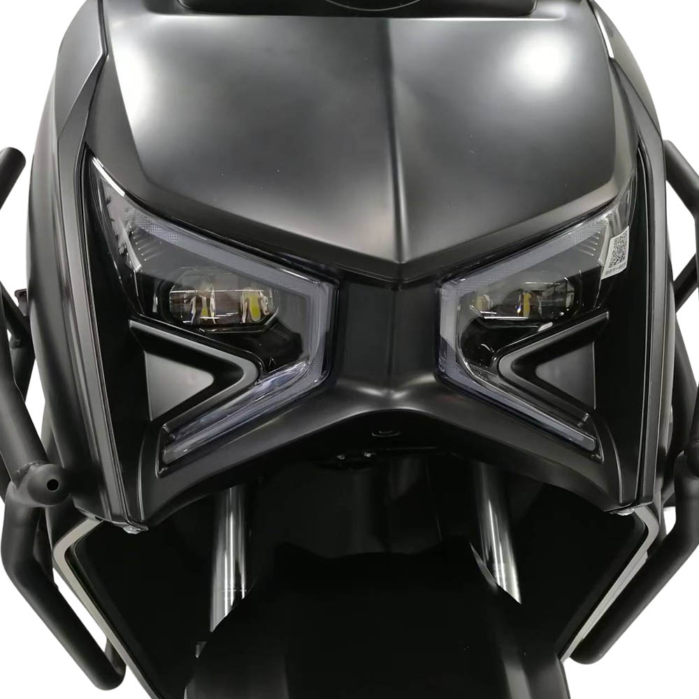 Електронна панель приладів акуратно об’єднує спідометр, одометр і тахометр з індикацією рівня пального, дальнього світла та покажчиків поворотів. Інформація зчитується легко і не перевантажує увагу. Передня LED-фара вбудована в облицювання і забезпечує рівне, насичене світло в темний час доби.