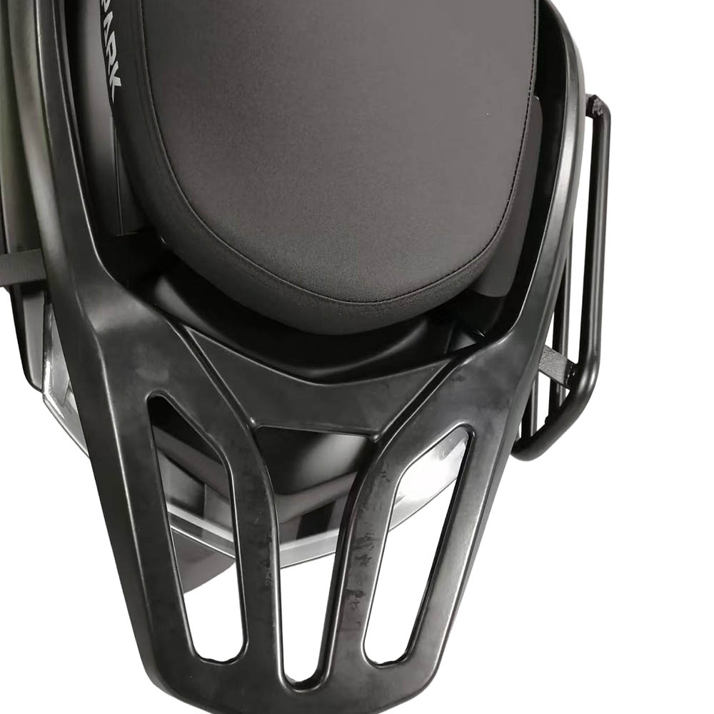 Висота по сидінню 940 мм формує впевнену посадку з хорошим оглядом над потоком автомобілів. Напівжорстке сидіння дорожнього типу, виконане по всій довжині, зручне як для водія, так і для пасажира. Пласка підлога додає комфорту під час посадки і висадки, а об’єднані підніжки пасажира органічно вписані в загальну конструкцію і не заважають під час одиночної їзди. Захисні дуги доповнюють практичність і підвищують відчуття впевненості в повсякденній експлуатації.