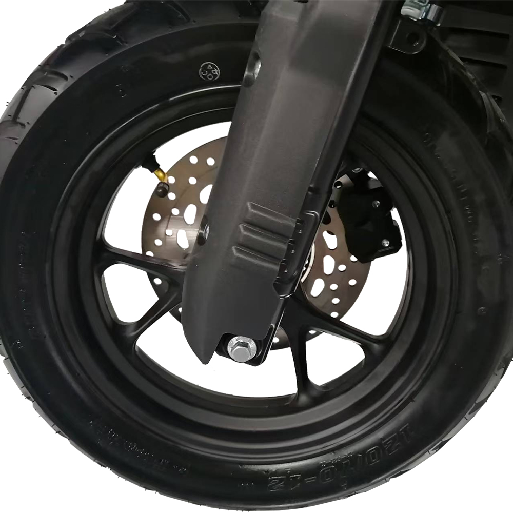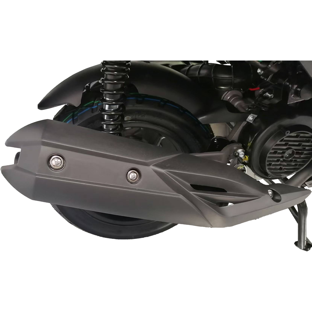 Трубчаста рама, телескопічна передня вилка та задня маятникова підвіска з двома амортизаторами добре справляються з нерівностями міських доріг. Переднє дискове гальмо забезпечує впевнене уповільнення, а заднє барабанне вирізняться простотою і надійністю. Легкосплавні колеса з дорожнім шосейним протектором розміром 120/70-12 оптимальні для асфальту та щоденних поїздок.