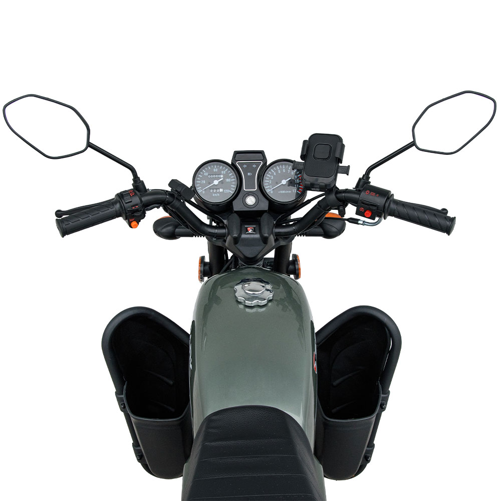 Оновлена ​​версія SPARK SP125C-2CFO отримала зручний ТРИМАЧ ДЛЯ ТЕЛЕФОНУ, який тепер входить до базової комплектації. Він встановлений на кермі в зоні комфортної видимості, тому навігація, трекер маршруту або будь-які програми залишаються під рукою. Конструкція надійно фіксує смартфон, не дає йому вібрувати або зміщуватися при їзді по нерівній дорозі, що особливо корисно в місті та на путівцях. Для щоденних поїздок це одне з найпрактичніших оновлень моделі.