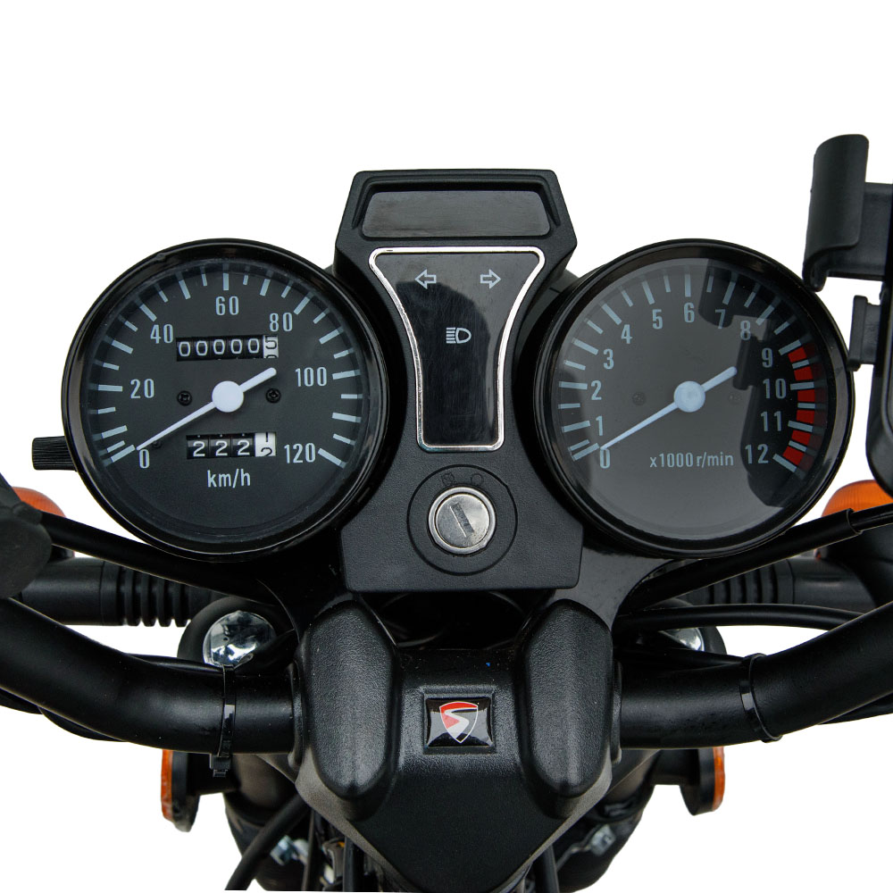 Роздільна панель приладів включає механічний спідометр і тахометр, а також індикатори передач, дальнього світла та поворотників. Усі шкали легко читаються навіть за яскравого сонця. Проста й надійна панель приладів робить мотоцикл зручним для новачків і тих, хто цінує класичні рішення.