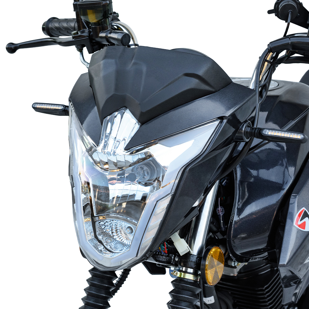 Передня оптика Фара вбудована в обтічник, з галогеновою лампою розжарювання. Габаритні вогні і покажчики поворотів зі світлодіодами.