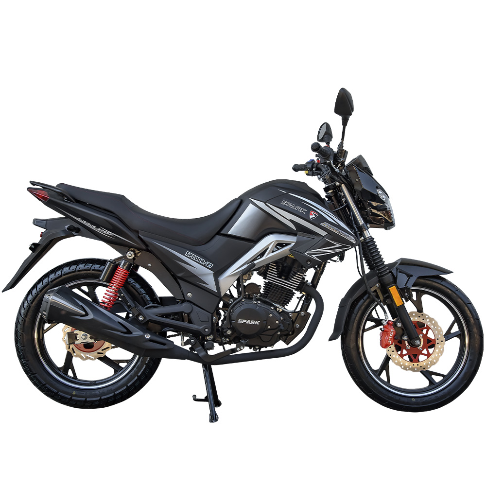 Гальма дискові, гідравлічні і спереду, і ззаду. Для швидкісної машини це важлива перевага, бо дає можливість гарантовано зупинити її на мінімальній дистанції гальмування. Загалом, SPARK SP200R-27 – це той мотоцикл, на якому ви будете не просто їздити кожен день у ваших справах, а й отримувати від цього неабияке задоволення.