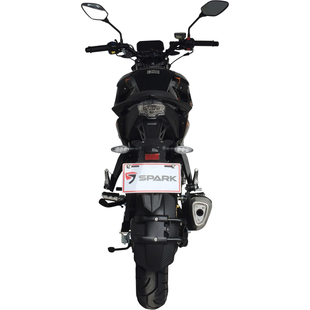У SP250R-43 встановлена телескопічна підвіска спереду та маятникова ззаду. Передня вилка перевернутого типу працює м’якше на дрібних нерівностях, а задній моноамортизатор додає стабільності. У підсумку мотоцикл не «стрибає» на стиках і більш передбачуваний на асфальті.