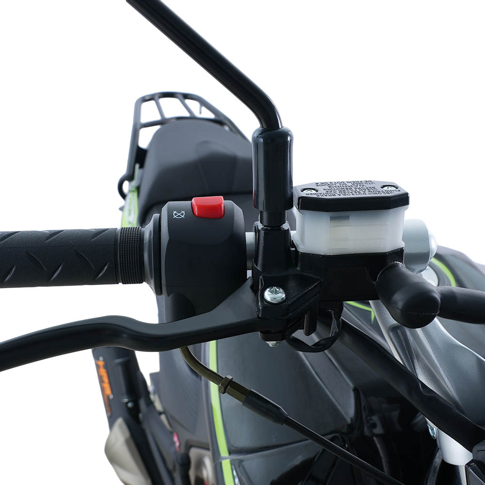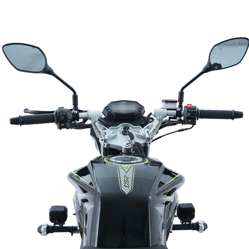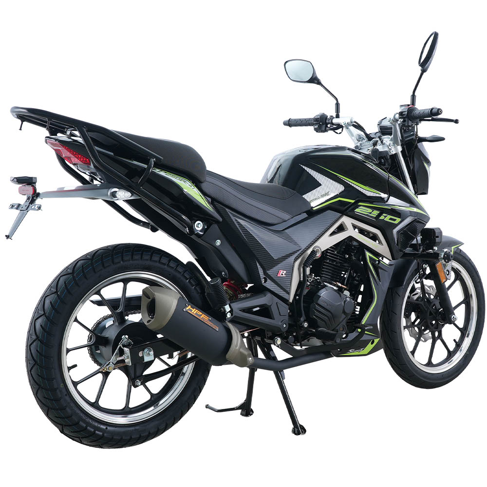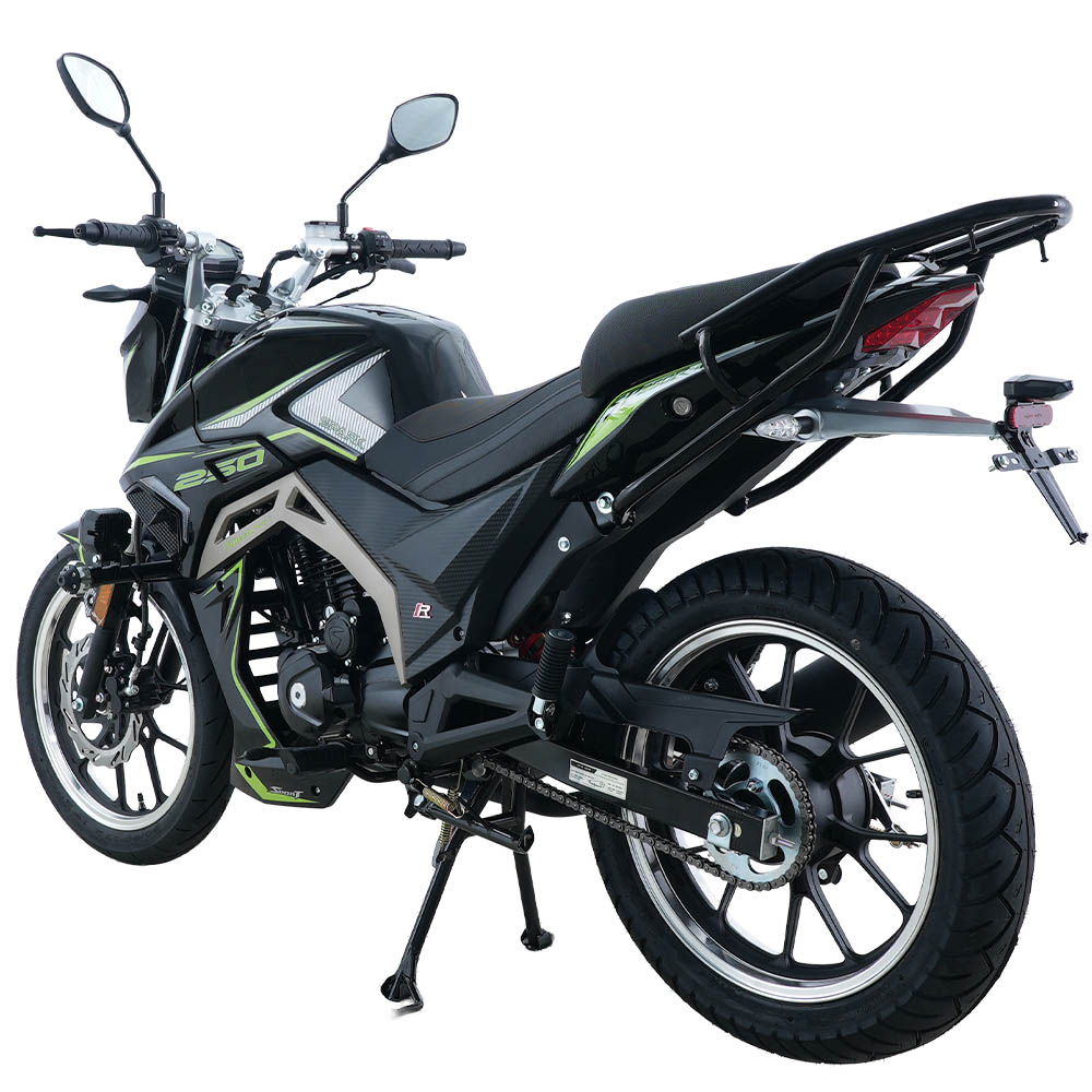 Мотоцикл двомісний, розрахований на навантаження до 150 кг, із висотою сидіння 800 мм – зручною для впевненої посадки та стабільного контролю на малій і середній швидкості. Електронна панель приладів, світлодіодна оптика, електростартер і кікстартер, а також дискове переднє гальмо формують практичний і збалансований образ сучасного дорожнього байка. Колісна база 1365 мм забезпечує поєднання стійкості на прямій дорозі та передбачуваної керованості в поворотах, що особливо важливо в міському трафіку.