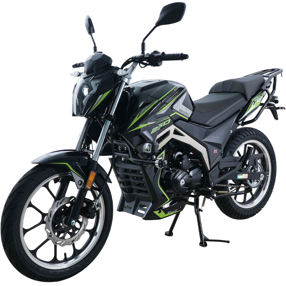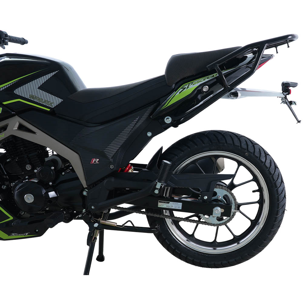 SP250R-47 – це дорожній мотоцикл, створений для стабільної та передбачуваної експлуатації без зайвих складнощів. Модель орієнтована на тих, кому важлива надійність, просте обслуговування та відчуття контролю за будь-яких умов. Двигун робочим об’ємом 223 см³ потужністю 16,3 к.с. дозволяє впевнено триматися в потоці та розганятися до 110 км/год, залишаючись економним у щоденному використанні. За середньої витрати пального близько 2,5 л на 100 км та паливного бака на 14 літрів мотоцикл забезпечує хороший запас ходу без постійних зупинок на заправках.