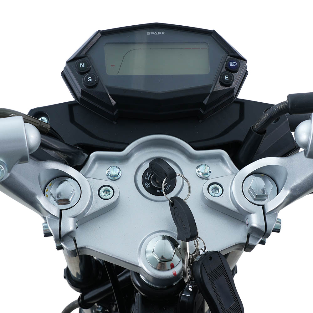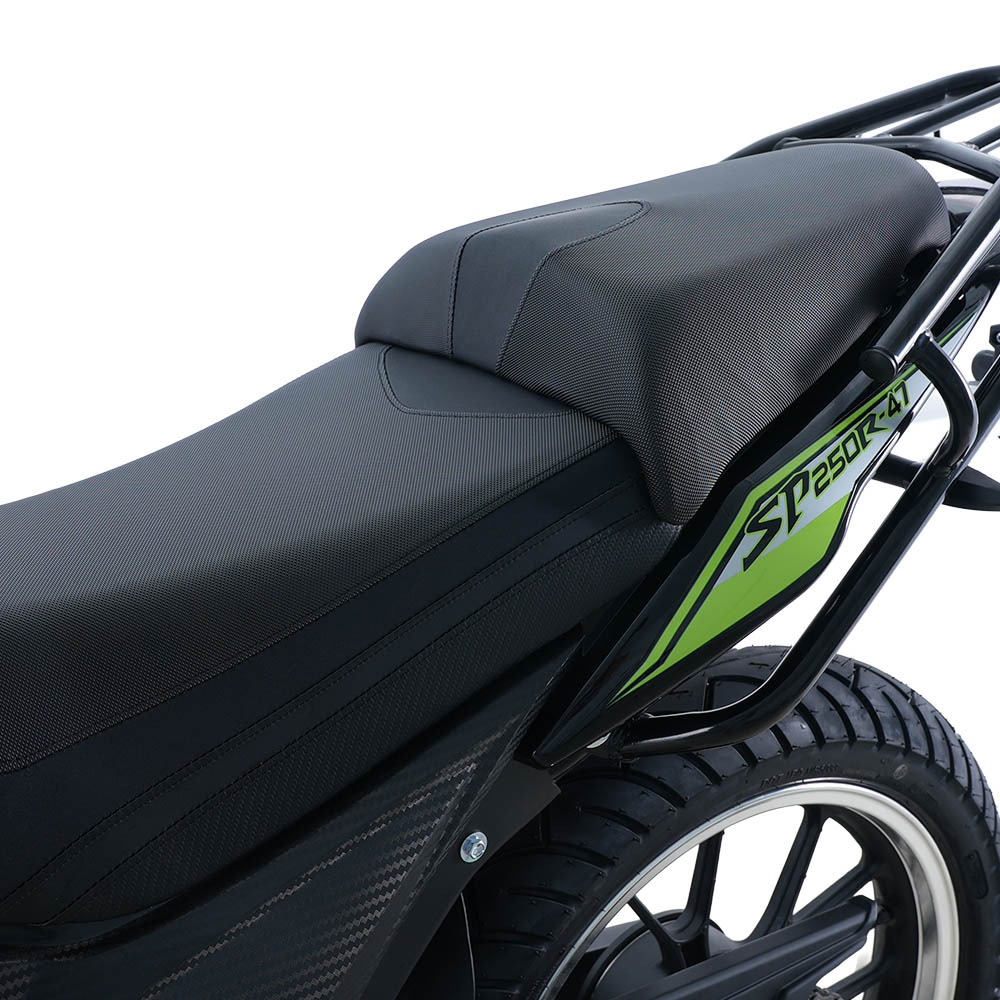 SP250R-47 оснащений електронною панеллю приладів, яка легко читається з першого погляду. На дисплеї відображається спідометр, тахометр, індикатор обраної передачі, а також сигнали ближнього й дальнього світла та покажчики поворотів. Усе розміщене логічно й без перевантаження, що дозволяє контролювати основні параметри руху, не відволікаючись від дороги.
