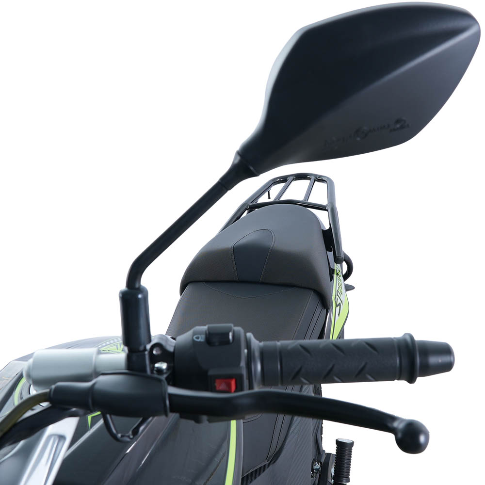 Задній багажник входить до комплектації та розширює можливості мотоцикла в повсякденному використанні. На ньому можна закріпити сумку або невеликий вантаж, що зручно для поїздок на роботу, навчання чи коротких маршрутів за місто.