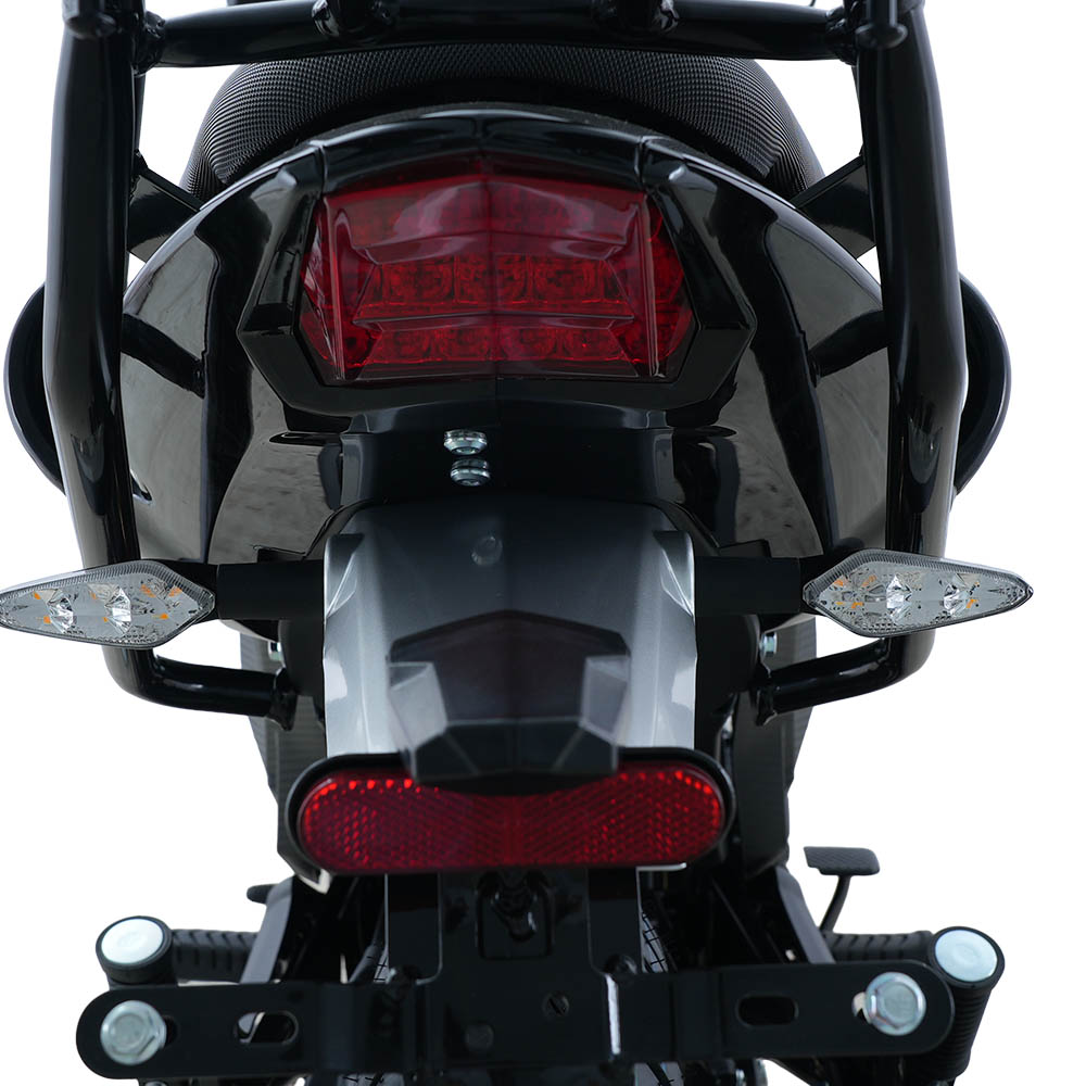 Задній ліхтар вбудований в обтічник крила та має комбіновану конструкцію: габаритне світло і стоп-сигнал зі світлодіодною матрицею. Він чітко читається навіть за денного освітлення та зрозуміло сигналізує про гальмування. LED-поворотники ззаду завершують світлову композицію, роблячи мотоцикл більш помітним для інших учасників руху.