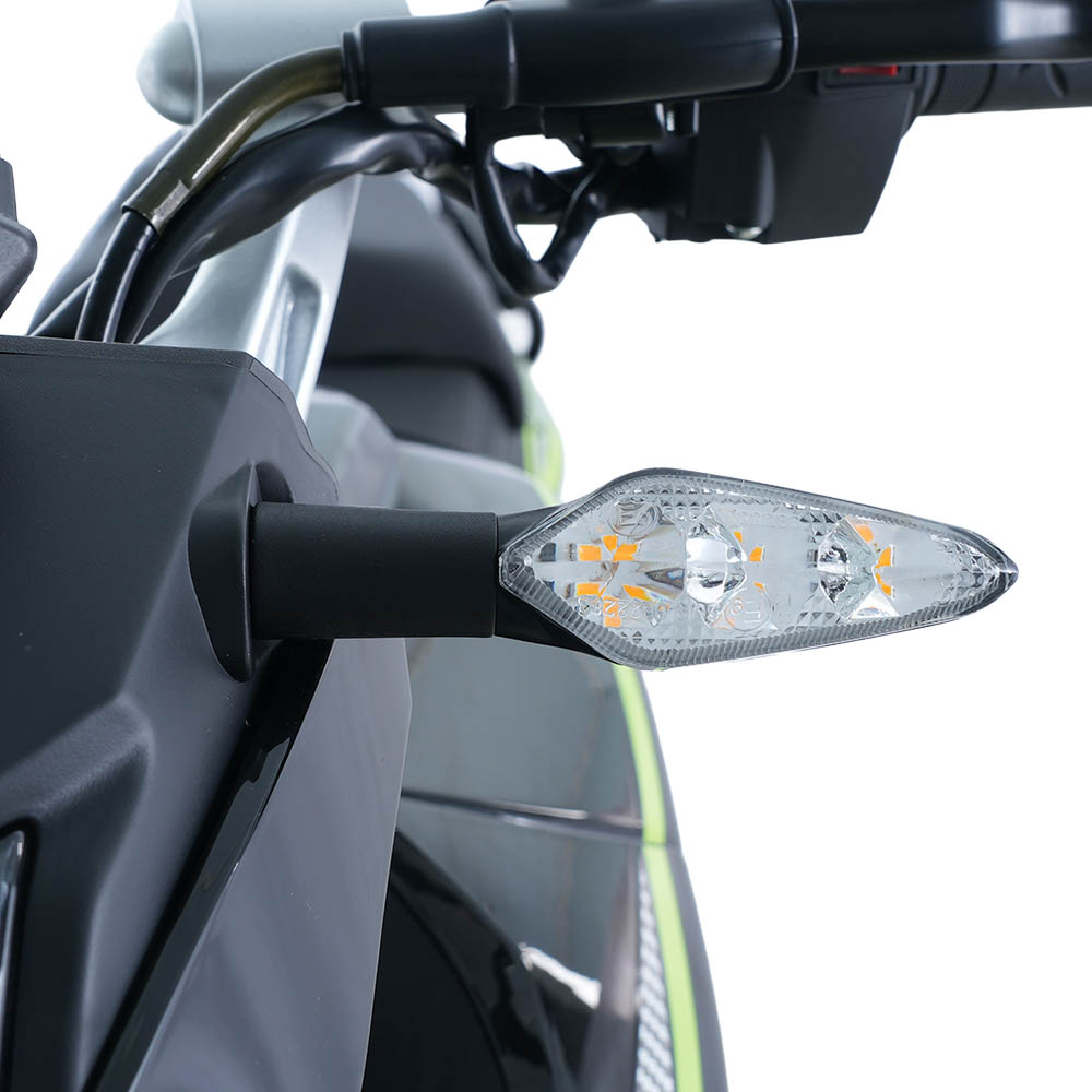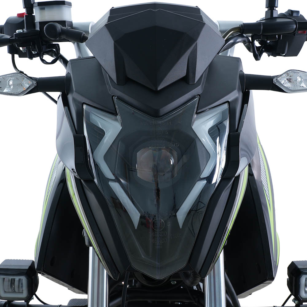 Передня LED-фара з лінзою інтегрована в обтічник і доповнена світлодіодними габаритами. Вона забезпечує рівномірне освітлення дороги в темну пору доби та робить мотоцикл добре помітним у потоці. Світлодіодні покажчики поворотів органічно доповнюють передню частину та підвищують безпеку під час маневрування.