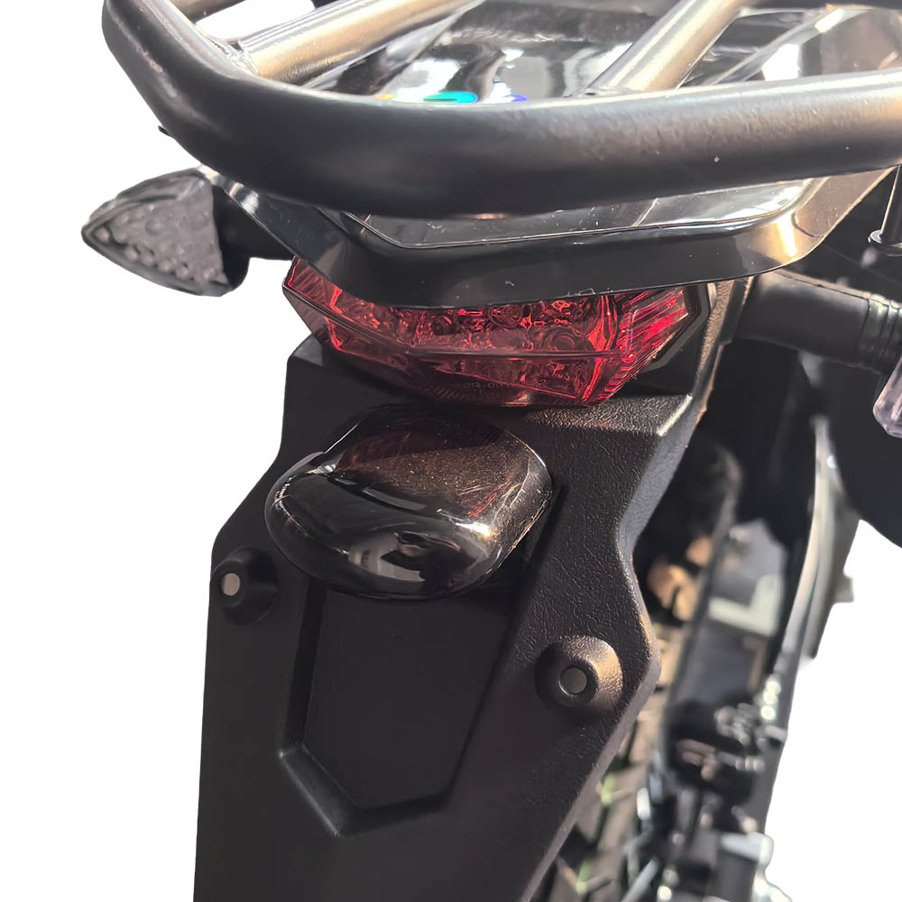Переднє світло в мотоциклі SP250CR-4 спроєктоване так, щоб байкер міг упевнено рухатися навіть у темну пору доби. Світловий пучок рівномірно падає на дорогу попереду, тож на темних ділянках, у тумані чи на нічній трасі видно достатньо, щоб почуватися спокійно й тримати комфортний темп.