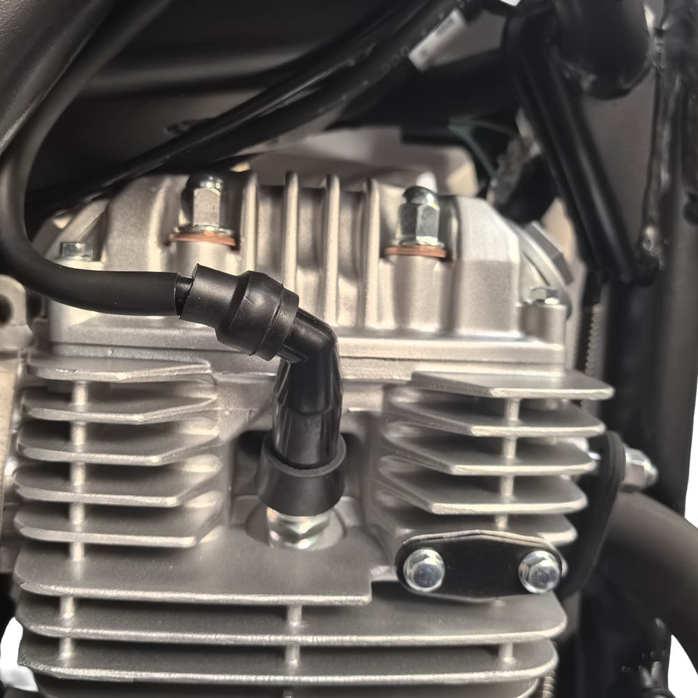 Повітряне охолодження робить конструкцію простою в обслуговуванні та надійною у тривалих поїздках. Самопливна подача палива знижує складність системи та підвищує її довговічність.
