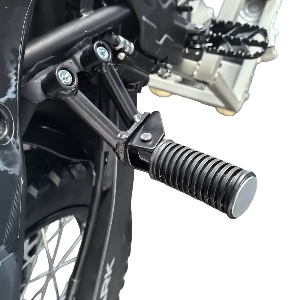 Мотоцикл SP250CR-4 оснащений захисною накладкою на глушнику, яка зменшує ризик випадкових опіків та зберігає зовнішній вигляд деталі. Відкидні підніжки водія й пасажира створюють комфорт під час посадки та надійний контакт із мотоциклом під час руху.