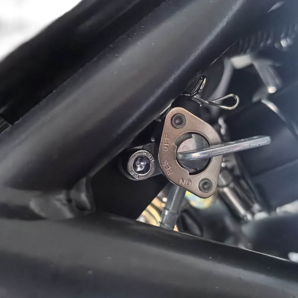 Двомісна компоновка і конструкційна маса 115 кг забезпечують маневровість навіть на складних ділянках. Сидіння на висоті 870 мм забезпечує комфортну посадку для водіїв зі зростом вище середнього, а колісна база 1335 мм додає стабільності, коли доводиться маневрувати чи тримати темп на швидкості. Бак на 7,5 л у поєднанні з витратою приблизно 2,1 л/100 км дозволяє спокійно долати великі відстані без постійних зупинок на заправці.