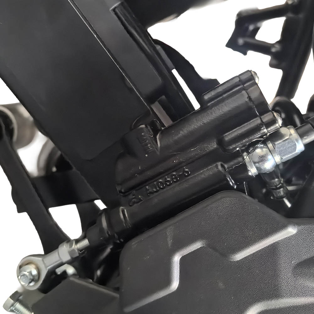 П’ятиступінчаста механічна коробка передач дозволяє оптимально підбирати передатне число залежно від покриття, а багатодискове зчеплення в масляній ванні працює плавно та стабільно. Мотоцикл запускається як електростартером, так і кікстартером — це зручно у різних ситуаціях.