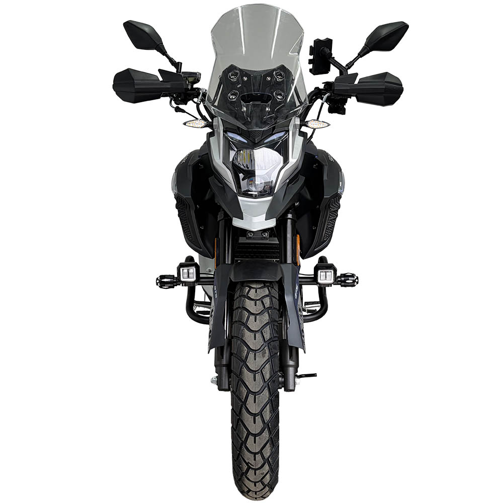 Передня LED-фара з лінзою формує чіткий, сфокусований світловий пучок, що добре освітлює дорогу в темний час доби. Світлодіодні динамічні покажчики поворотів жовтого або помаранчевого кольору на гнучких кріпленнях підвищують помітність мотоцикла в потоці транспорту та краще витримують вібрації під час руху.