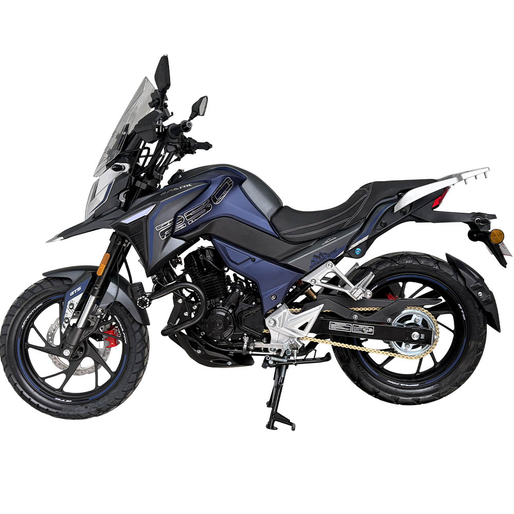SP250T-4 – це мотоцикл формату Tur Enduro, створений для тих, хто планує не лише міські поїздки, а й тривалі маршрути асфальтом, заміськими дорогами та подорожі з багажем. Модель поєднує туристичний комфорт, ендуро-посадку та практичне оснащення, яке з заводу орієнтоване на реальну експлуатацію, а не лише на дизайн. Двомісна компоновка дозволяє подорожувати з пасажиром без втрати стабільності та зручності.