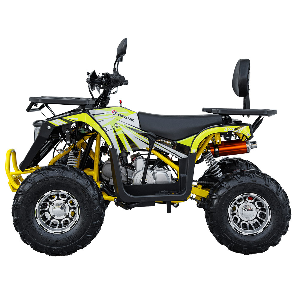 Колёса в SPARK SP125-15 оснащены лёгкими алюминиевыми дисками, которые уменьшают массу квадроцикла и улучшают его манёвренность. Шины со спортивным протектором обеспечивают отличное сцепление на разных поверхностях — от грунтовок до песчаных дорог. Алюминий устойчив к коррозии, что продлевает срок службы дисков.