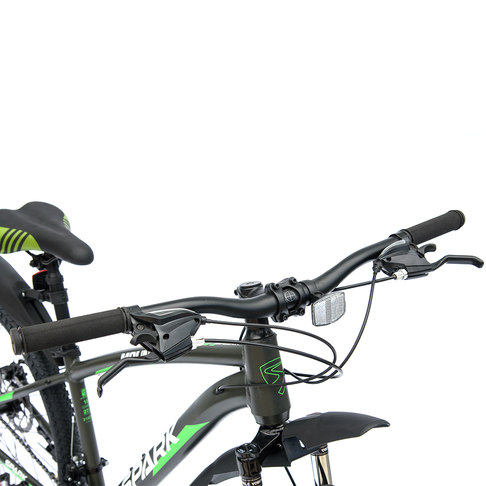 Велосипед SPARK MOUNT 27,5" ал15 має 21 швидкість. Така особливість дозволяє оптимізувати зусилля під час пересування будь-яким рельєфом. Перемикачі SHIMANO TZ500 працюють плавно та чітко навіть під інтенсивним навантаженням. Вони не залипають і не підвисають під час зміни передач. На підйомах чи при швидкісному спуску велосипед залишається на 100% під контролем. Гальмівні ручки, вбудовані в перемикачі. Гальмуй та перемикай швидкість, не змінюючи положення руки.
